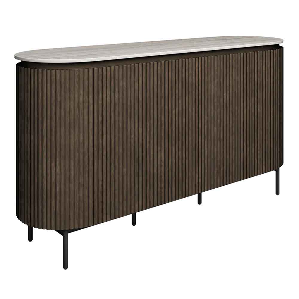 Molaro Ceramic Top Sideboard with 3 Doors in Travertine and Walnut