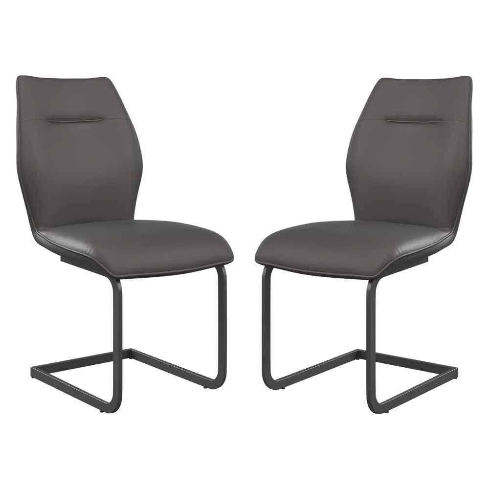 Pisar Grey Faux Leather Dining Chairs with Metal Legs in Pair