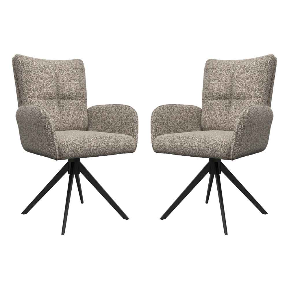 Rivano Oatmeal Fabric Swivel Dining Chairs with Black Legs in Pair
